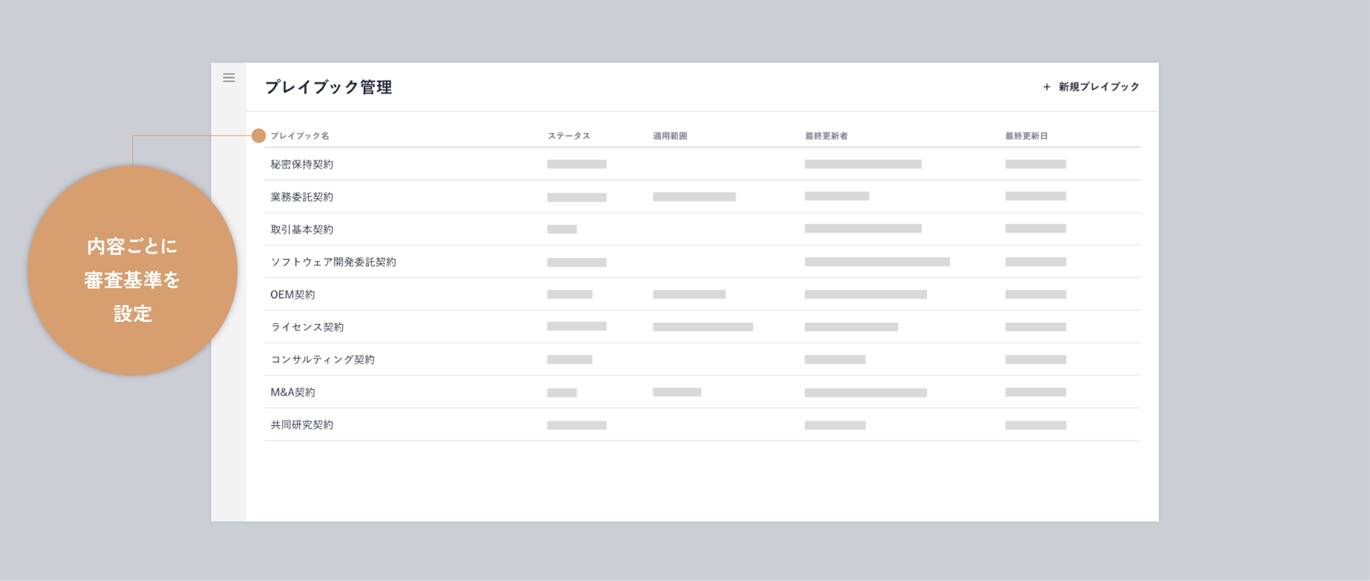 長島・大野・常松法律事務所の監修プレイブック(審査基準集)を標準搭載。導入初日から高度な審査を実現可能。